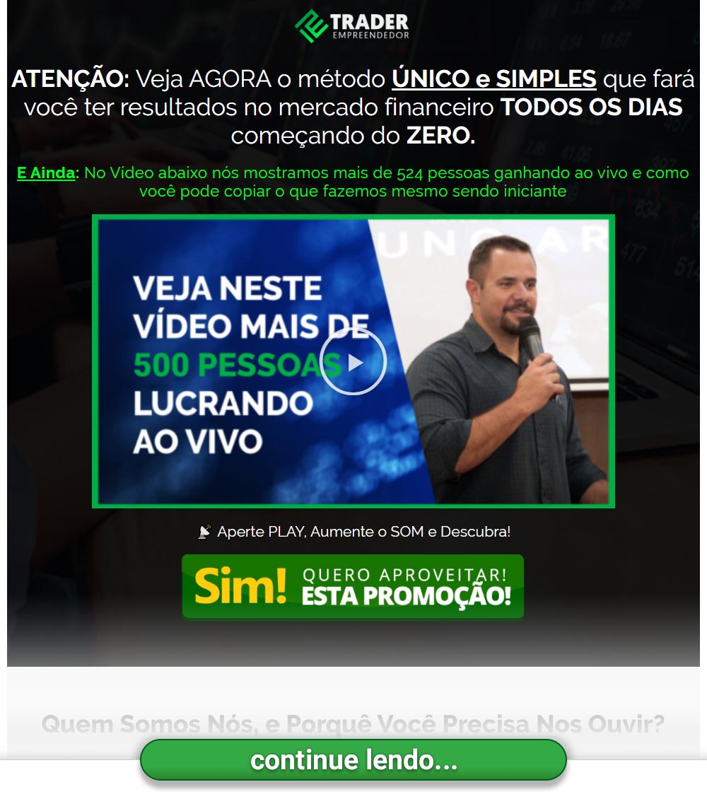 A maior plataforma de consultoria para traders com conteúdos das principais plataformas de operações do mercado financeiro mundial. Forex, opções binárias e trader esportivo. Com este conteúdo, você terá plenas condições de participar de nossas aulas ao vivo e negociar com nossos experts Elias Iwanaga, Bruno Araújo, Deber Júnior, Leonardo Oliveira, Maycon Hott e Renan Camargos. Juntos formamos o time de traders da Trader Empreendedor.